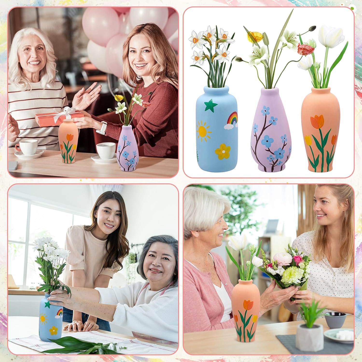 Features: Get creative: paint and stain the ceramic vases with various colours of paint! Get creative and colour the vase with bright vibrant colours, add your name, seasonal designs, fun patterns and more Thoughtful Gift: paint these white vases as per your aesthetics to make them into special, one of a kind gifts. They can effectively express your affection towards your friends or family. Suitable for occasions like Thanksgiving, weddings and more Specifications: Material: ceramic Color: White Size: ceramic vase size of 3.94x1.77inches/10x4.5cm Package includes: 12 White ceramic vases 4 Sets of paintbrushes and acrylic pigments Notes: Manual measurement, please allow slight errors on size. The color may exist a slight difference due to different screen displays