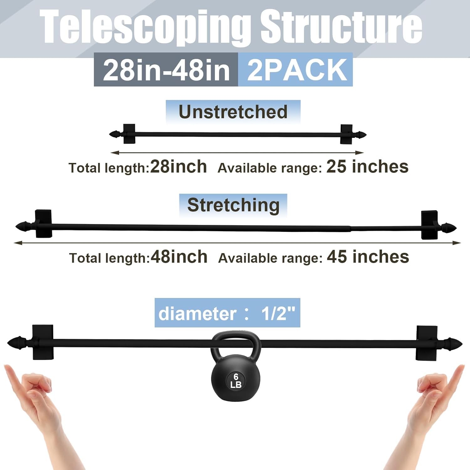 • Package Include: you will get 2 adjustable magnetic curtain rods, extends 28-48 inch