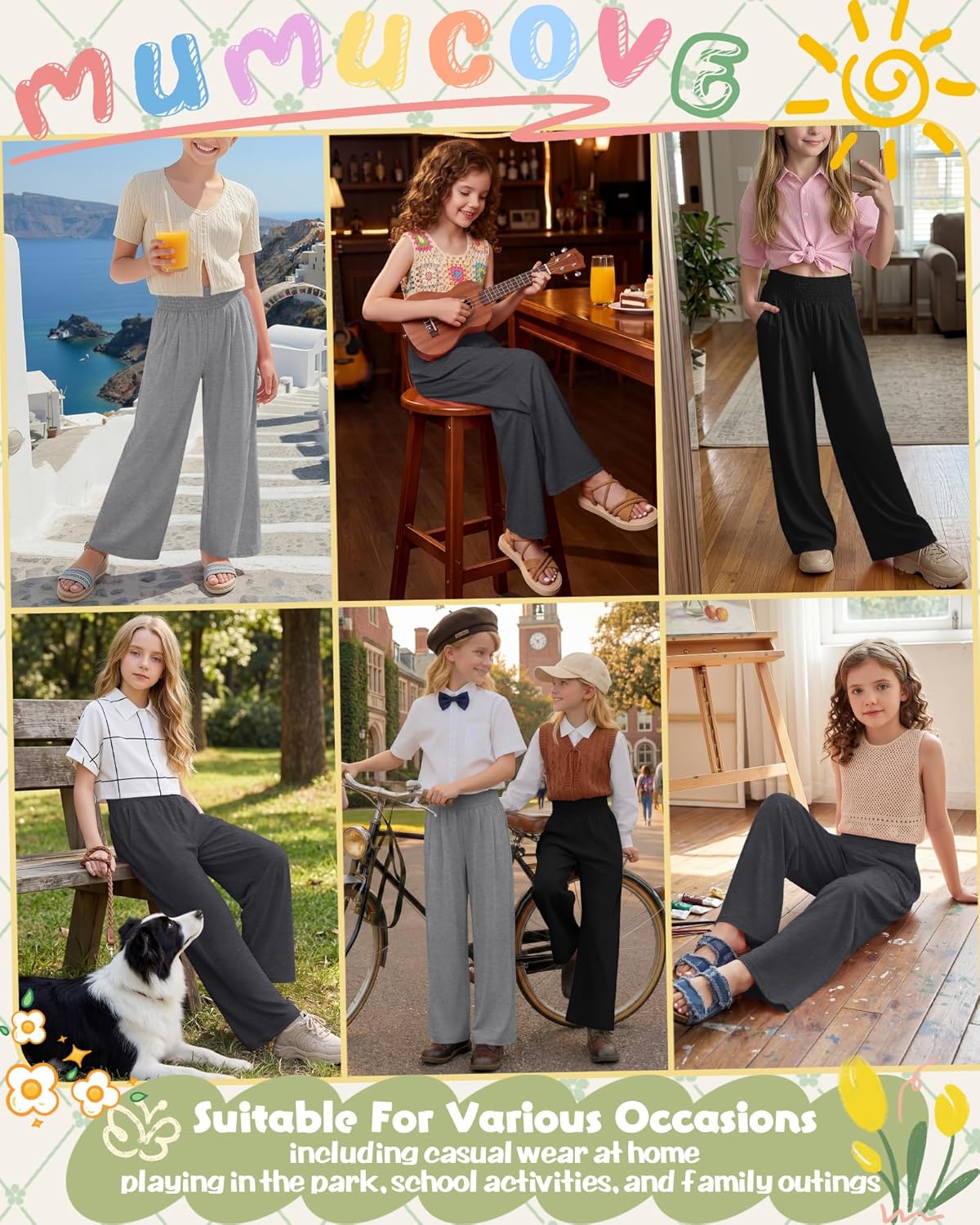 Features: Ideal choice: These girls' high waist baggy pants combine a flowing, comfortable feel with style, making them a practical and fashionable gift for your daughter, niece, or granddaughter. Caring tips: Machine or hand washable: wash in cold water on a gentle cycle, then hang to dry. Do not bleach—it may damage the fabric's quality and color. Specifications: Material: 60%Polyester, 35%Cotton, 5%Spandex Package includes: 3 X wide leg flowy pants for girls Notes: Manual measurement, please allow slight errors on size. The color may exist a slight difference due to different screen displays Please do not wash our products with other clothes, and bleaching is not allowed