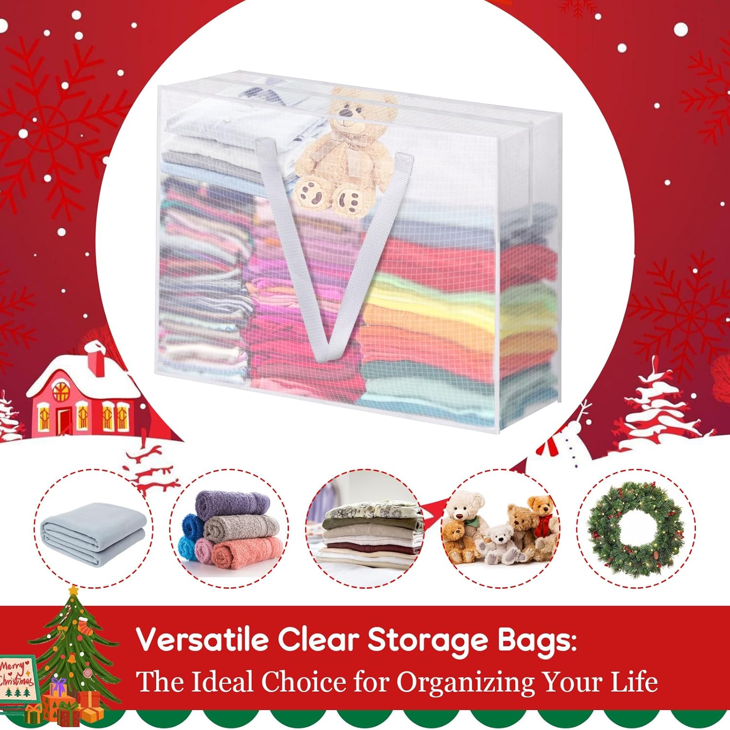 6PCS Christmas Wreath Storage Container, 25" Large Moving Bags Garland Container Clear Storage Bags with Handles Zippers Clear Christmas Storage Bags for Xmas Seasonal Holiday Wreath Storage Wrapping