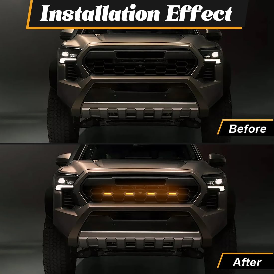 Amber LED Grille Lights for Tacoma TRD Pro/Trailhunter 2024 2025, 4Pcs Front Grill Light Kit with Wire Harness and Fuse