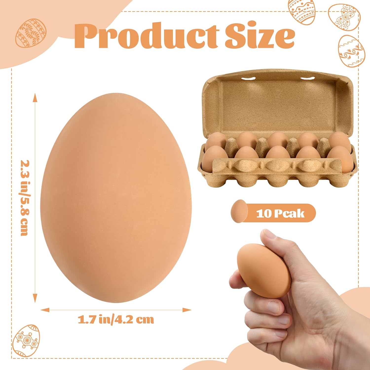 Features: Eggs Crafts: Color these Easter eggs in various colors and patterns. As an interesting family activity, let your creativity run wild in these fake eggs and enhance the bond between family Specifications: Material: Ceramic Color: Brown Size: 1.7 x 2.3 In Package includes: 18 x Ceramic Nest Eggs Theme: Ceramic Nest Egg Style: Modern Occasion: Easter Party; chicken coop Fabric Type: Target Audience: All Age RangeL: All Included Components: Ceramic Nest Egg, pulp egg carton Number of Pieces: 10-18 Shape: Egg Special Feature: Reusable Number of Items: 18 x Ceramic nest egg, 1 x Pulp egg carton Notes: Manual measurement, please allow slight errors on size. The color may exist a slight difference due to different screen displays.