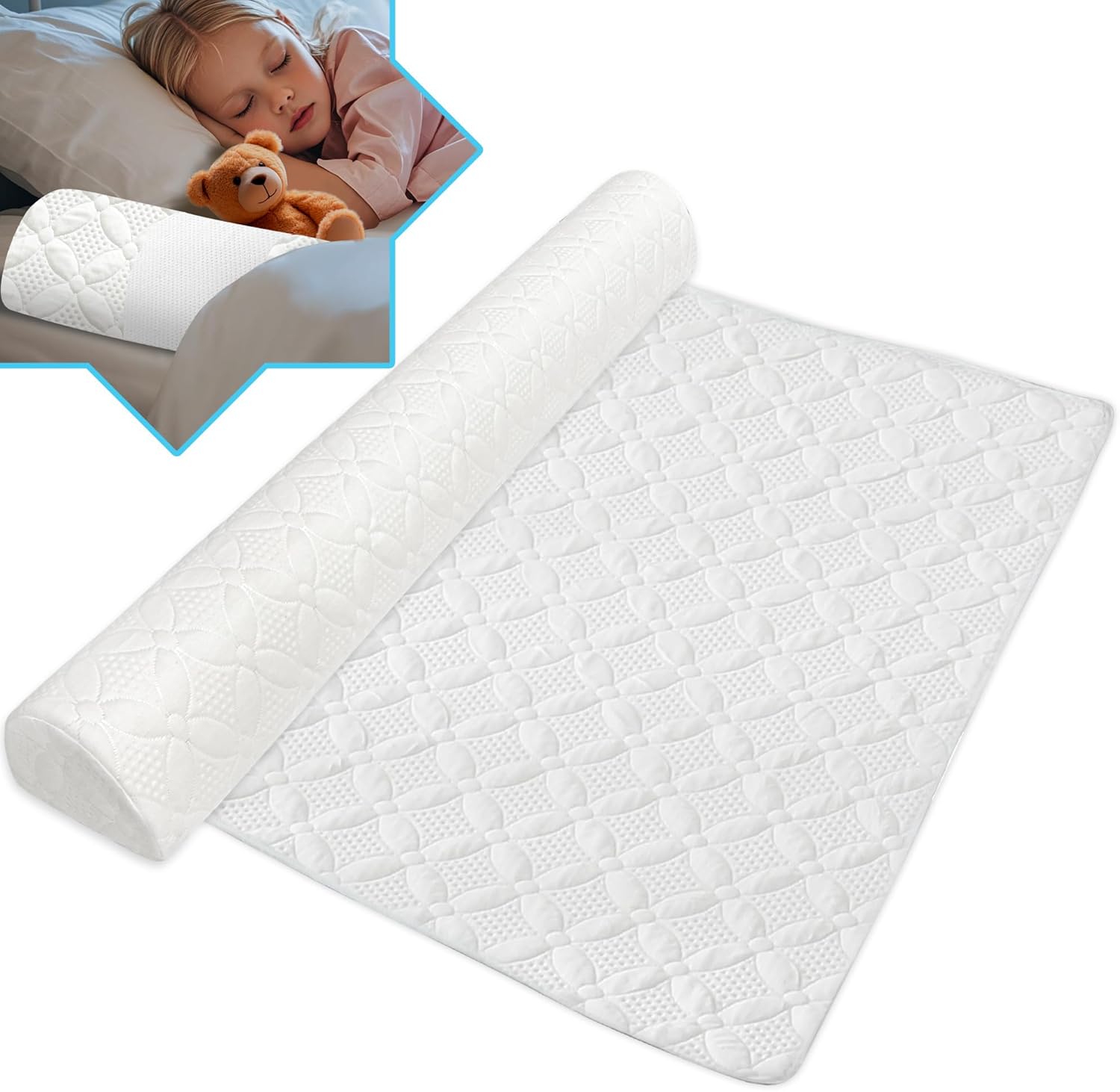 • Product Dimension: With the size of 52’’Lx7’’Wx5’’H, our memory foam bed divider is suitable for all sizes of beds, including twin, twin XL, full, full XL, queen and king sizes. This provides a one-and-done solution for protecting toddlers, the elderly, and pregnant women from rolling and falling out of bed
