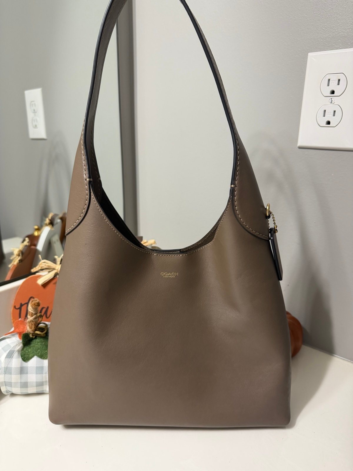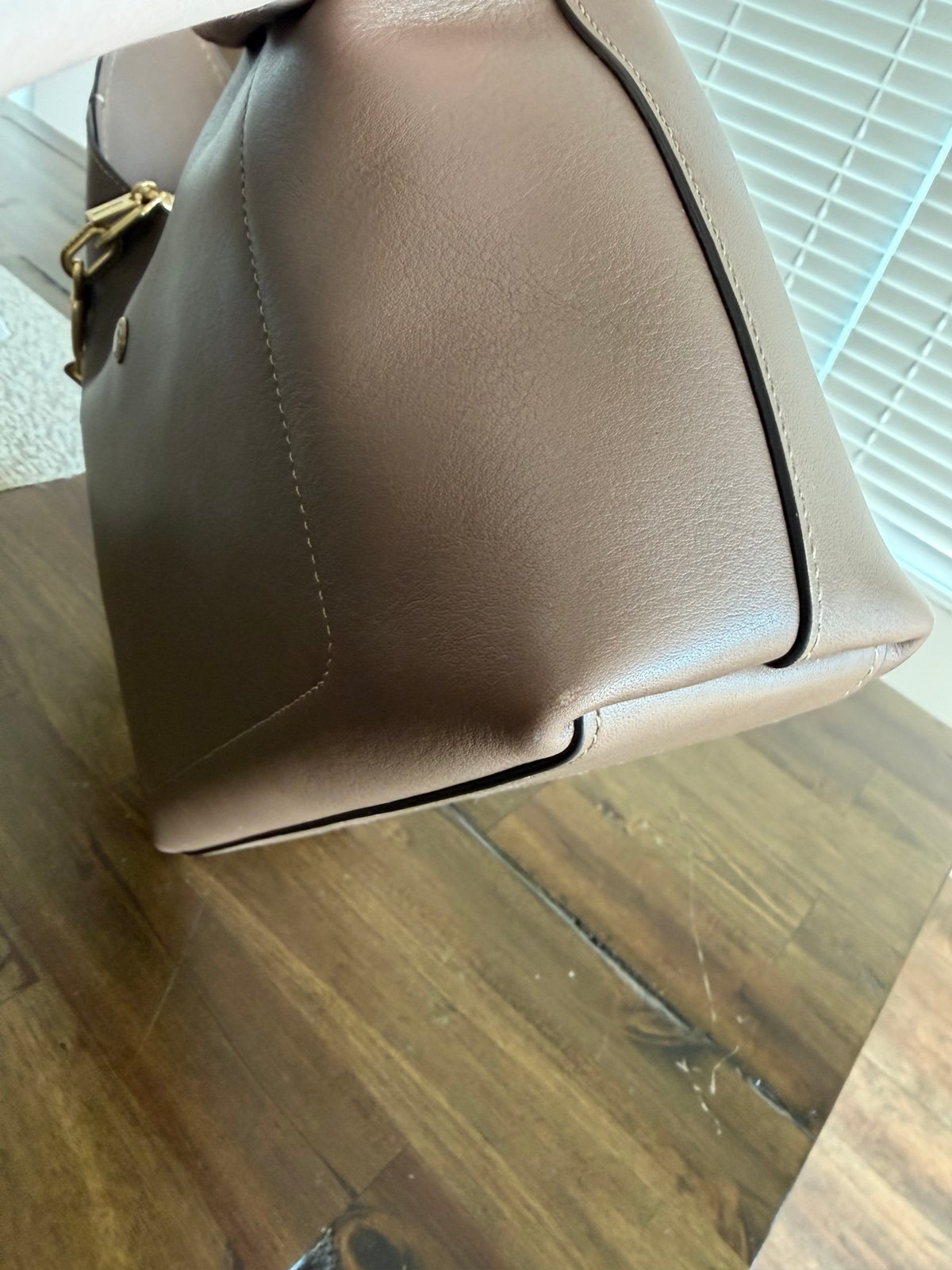 In like new condition - used only once or twice. Please see the darker mark on the leather on picture number 2 - it came like that! There is also a small scuff mark noted in photo number 8. I didn’t even notice it until taking photos for this listing.