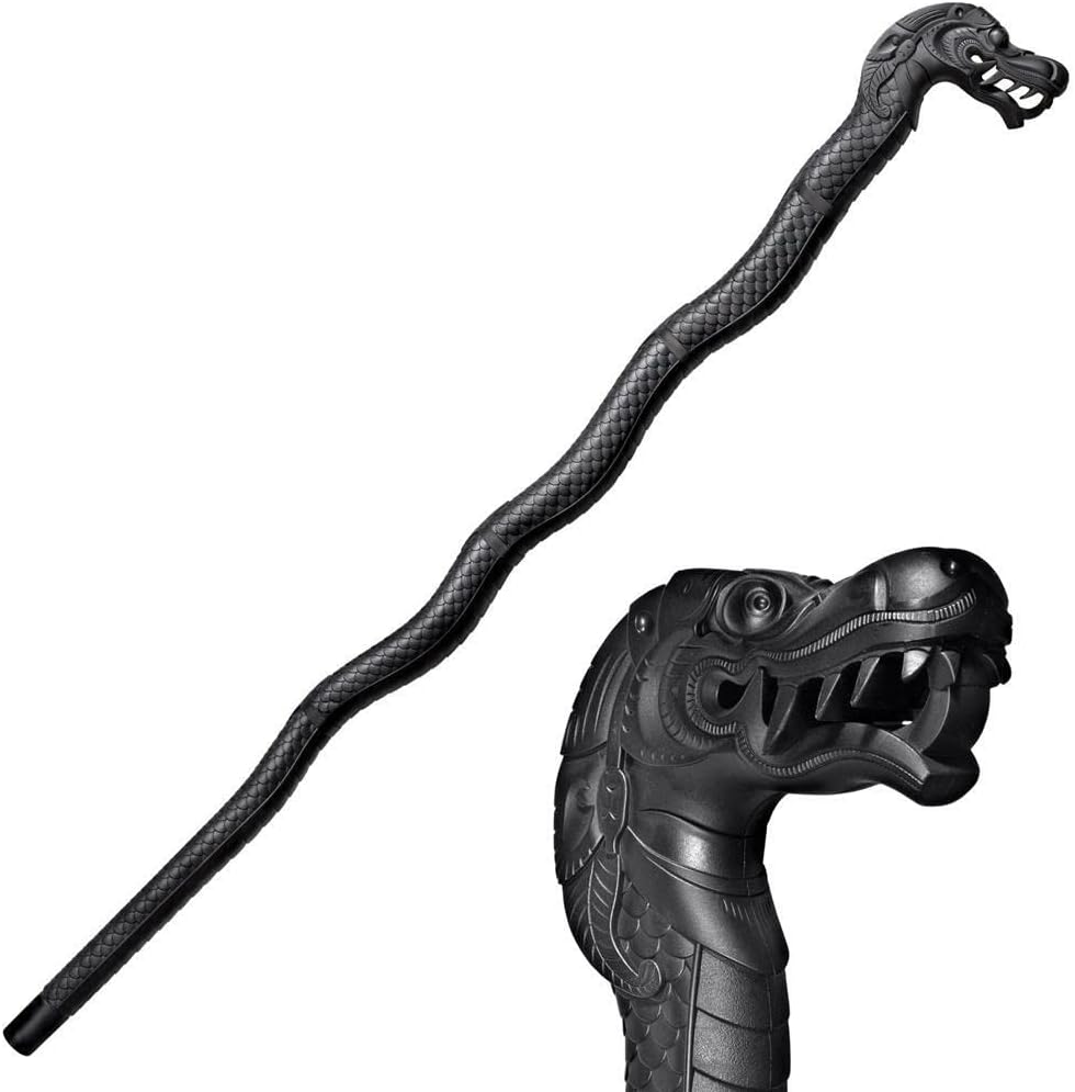 • The illustrated Cold Steel Walking Stick is the Cold Steel Dragon Walking Stick that features single piece black Polypropylene construction.