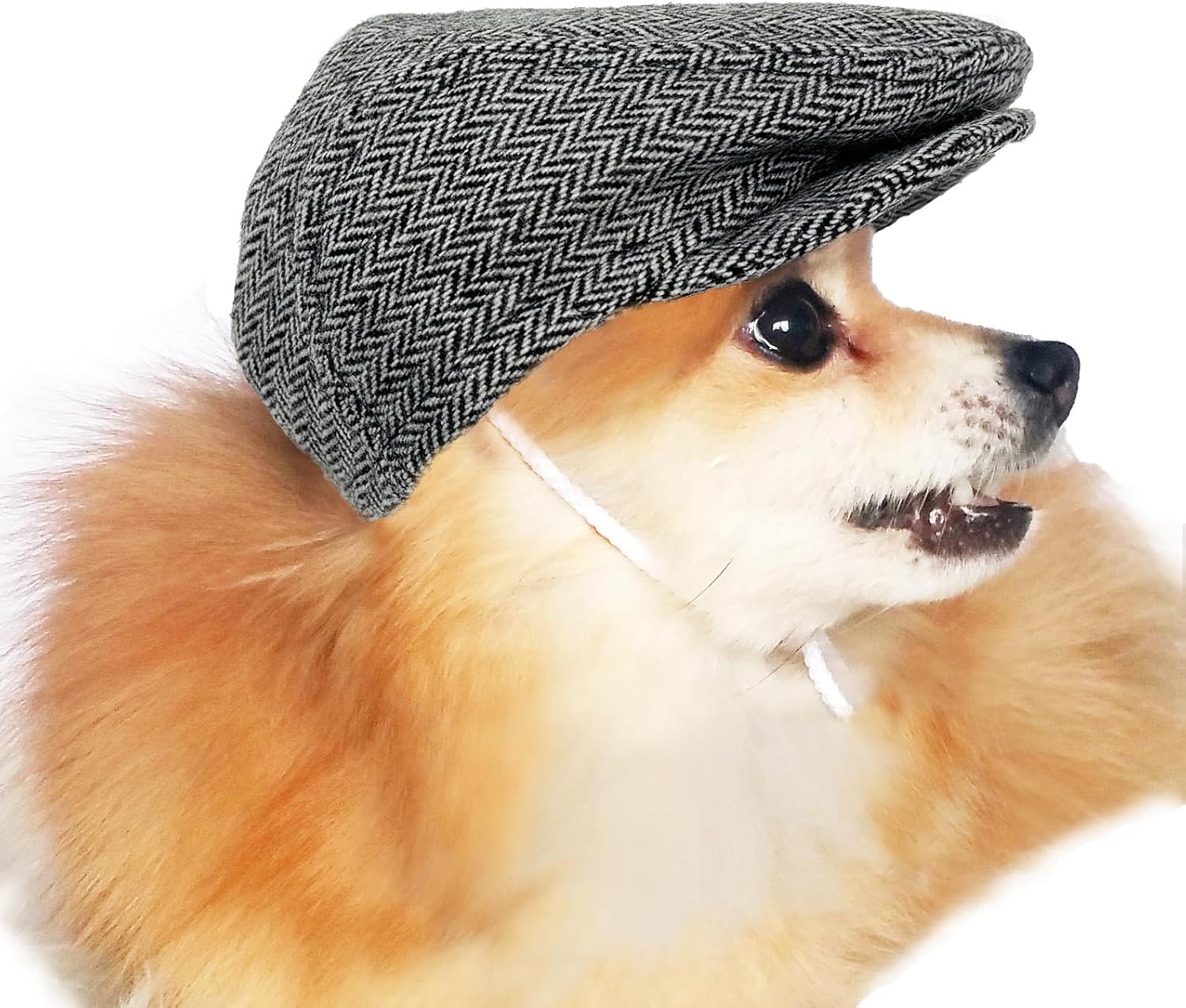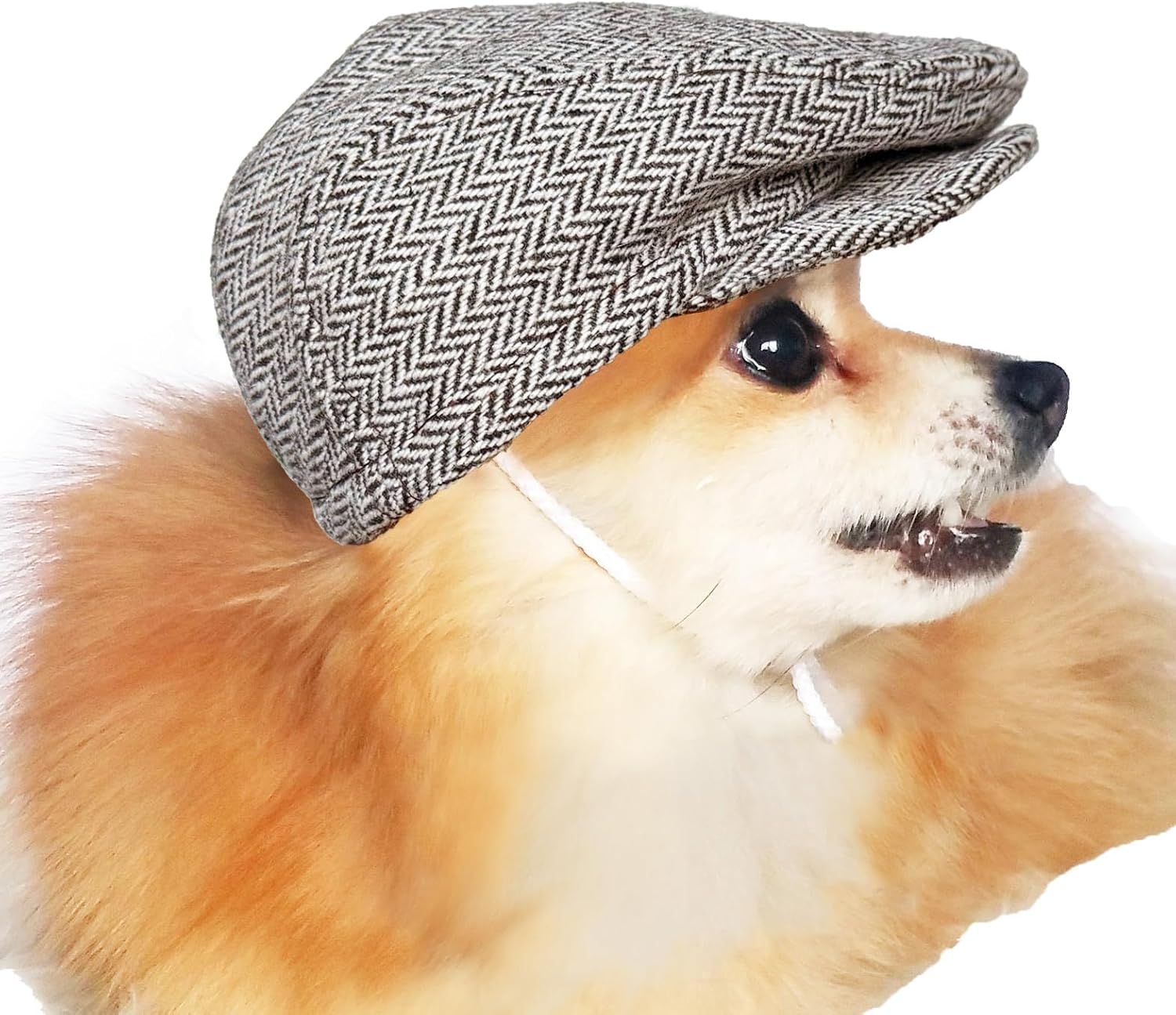 100% Handmade dog Ivy Cap Dress your dog in vintage-inspired charm with this handmade herringbone flat cap. Crafted from soft, stylish tweed fabric, this classic newsboy-style hat is the perfect accessory for fashionable pups. Whether you're planning a cozy fall photoshoot, a themed party, or just want to turn heads on your next walk, this cap delivers timeless appeal. Designed for comfort and practicality, it features a lightweight construction and an adjustable chin strap to keep it in place. A perfect gift for stylish pet parents or a standout addition to your pup’s accessory collection.