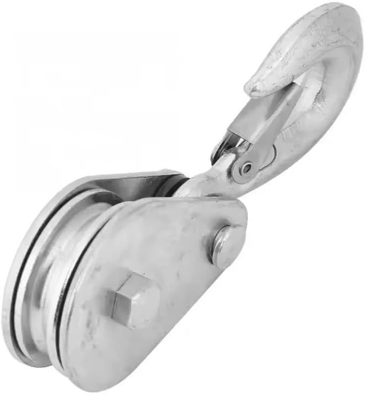 This 2-pack of heavy-duty single wheel pulley blocks is built to handle demanding lifting and rigging tasks with confidence. Constructed from high-strength steel with a galvanized finish, these pulley blocks are designed to withstand tough working conditions while resisting wear and corrosion. Each unit features a smooth-rolling single wheel that reduces friction, making it easier to lift, lower, or redirect loads efficiently. The integrated safety hook comes equipped with a latch to keep loads secure during operation, providing an added layer of reliability. With a load-bearing capacity ranging from 0.5 to 1 ton, these pulley blocks are well-suited for construction sites, workshops, garages, and other heavy-duty applications. The sturdy bolt-and-nut assembly at the top allows for secure attachment to overhead anchor points. Whether you are hoisting equipment, moving heavy materials, or setting up a rope system, this set of two pulley blocks delivers the strength and dependability you need. Always ensure proper installation and adhere to the stated load capacity limits for safe use.