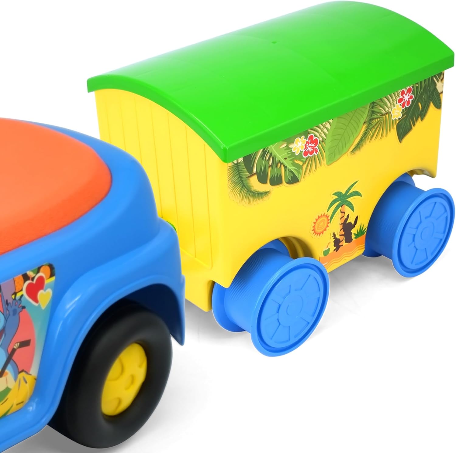| Included Components | 1 Stitch Beach Car Ride On, 1 Trailer, 1 Sand Bucket, 2 Sand Molds, 1 Fork, 1 Shovel |