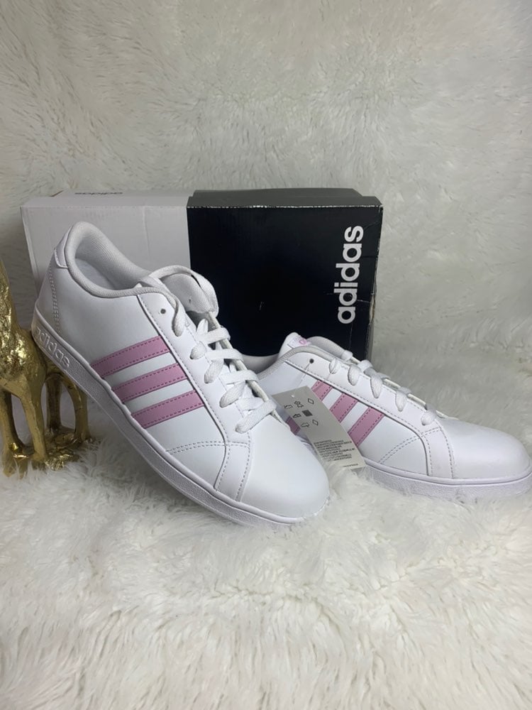 NEW! Adidas Youth Girl's Baseline Lace Up Shoes White/Pink #DB3560 151A cc