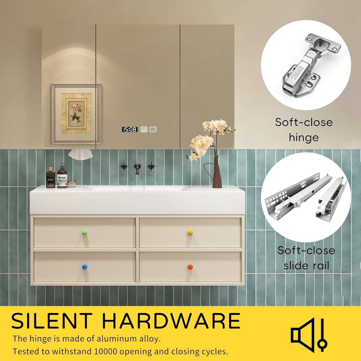 • 【Illuminated Smart Mirror】Transform your daily routine with the included lighted vanity mirror wall mounted design. This wall mirror for bathroom features integrated LED lighting and anti-fog technology, ensuring a clear, reflection every time. It's a giant mirror that brightens up the entire room.