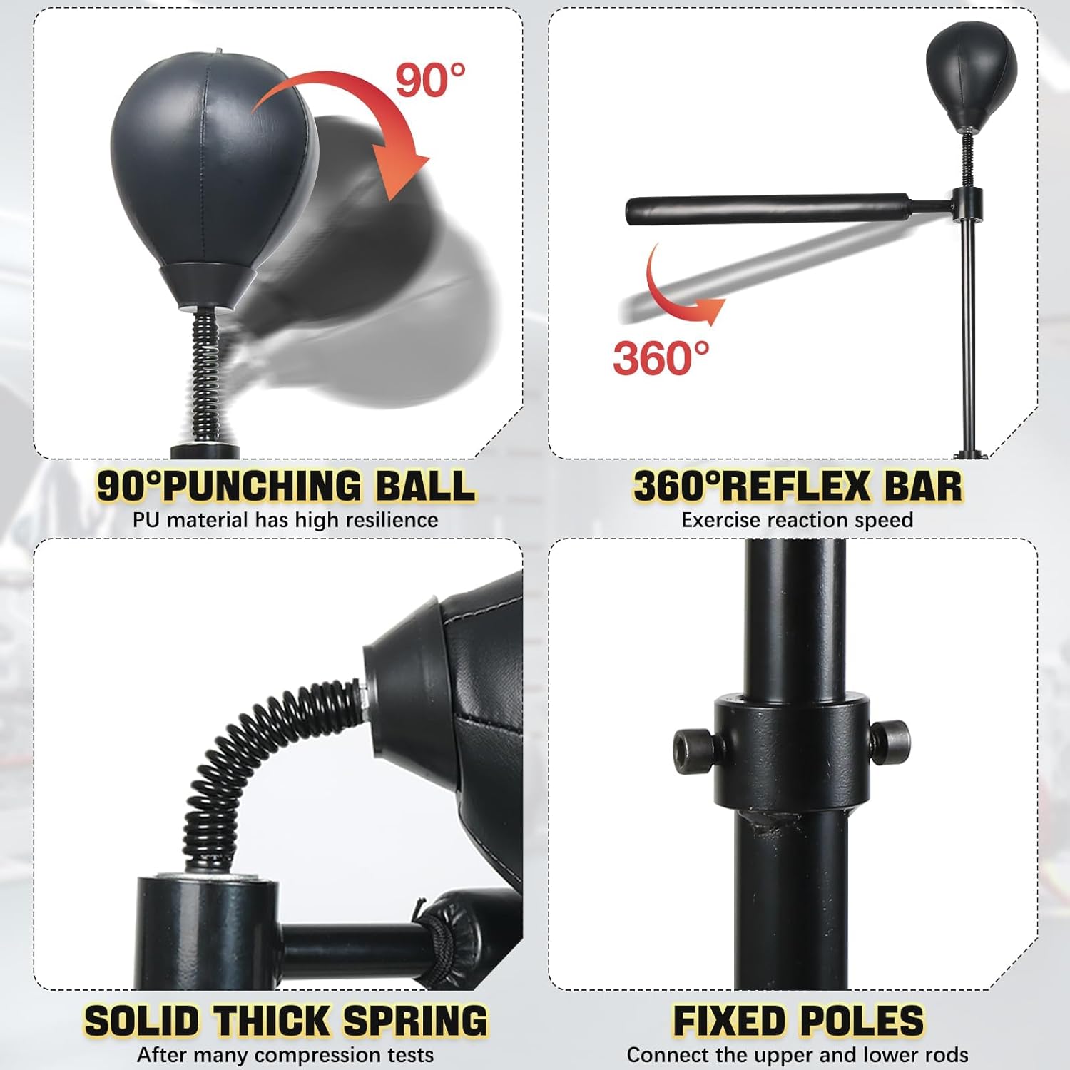 Punching Bag Boxing Speed ball Trainer Spinning Bar Boxing Ball with Reflex Bar Free Standing 45-80in Adjustable Height for Adult Youth