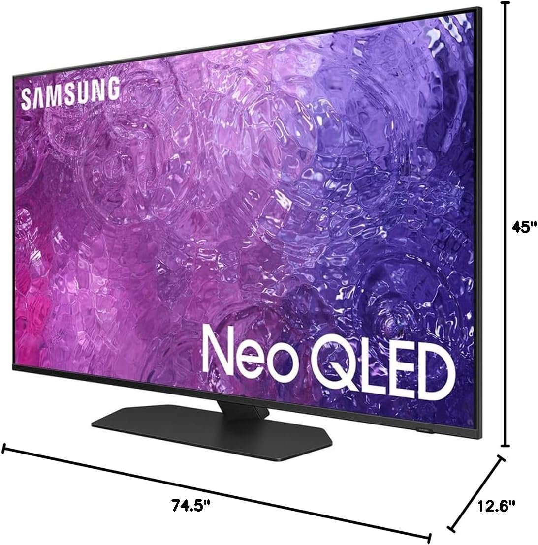 QN90C Neo QLED 4K Smart TV (2023) Graduate to a more brilliant 4K experience—powered by Quantum Matrix Technology and presented with NeoSlim refinement. Precise contrast, pristine color and premium design reward every glance, whether the TV is on or off. While you’re watching, each scene is optimized to bring you stellar brightness and incredible details. And with AI-processing, it’s all upscaled to 4K while your Smart Hub and sound are fine-tuned. PICTURE Quantum Matrix with Mini LEDs Brilliant details shine even in daylight with Quantum Matrix Technology. Powered by a huge grid of Samsung’s ultra-precise Quantum Mini LEDs, it takes exact control of the individual zones of light in your picture for breathtaking color and contrast. 4K Resolution with AI Upscaling See everything you watch instantly transformed to incredibly sharp 4K resolution. Neo Quantum HDR+ Every detail bursts to life with the realistic contrast and brilliance the director intended. Neural Quantum Processor 4K See all you enjoy upscaled to spectacular 4K with the AI-based processor. 100% Color Volume with Quantum Dot Get a billion brilliant colors that stay true even in bright scenes. Anti-glare Virtually reflection-free to enjoy shows without distractions. Motion Xcelerator Turbo+ Action movies, sports and games look smooth and fluid up to 4K at 120Hz. Ultra Viewing Angle You’ve got the best view from every seat, no matter where you sit down. Optimized Eye Comfort Mode Enjoy an optimized display without lifting a finger. Its lighting system evaluates the brightness of your space to tailor your screen contrast. FreeSync Premium Pro Take down game lag and stuttering—with your TV and console teaming up. Auto Game Mode (ALLM) Ultra-low latency means less lag, less drag and more time to win.