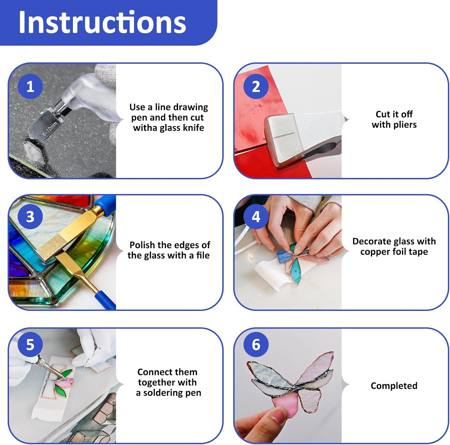| Included Components | 100w soldering iron, 6-inch glass breaking pliers, 7mm rolled copper foil tape, 8-inch glass running pliers, 8-inch mosaic glass cutting pliers, anti cutting glove, bent tip tweezers, black electrical tape, hex wrench, manual zipper bag, multimeter+test lead, nozzle pliers/blue, replacement wheel, screw, screwdriver, small yellow knife, straight tip tweezers, washer |