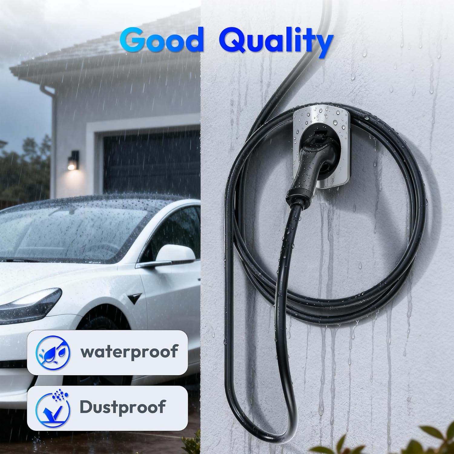 Tera EV Charger Holder J1772 - Heavy Duty Wall Mount Electric Vehicle Connector EV Charger Holster Charging Cable Holder Organizer Electric Vehicle Charging Station Car Accessories White