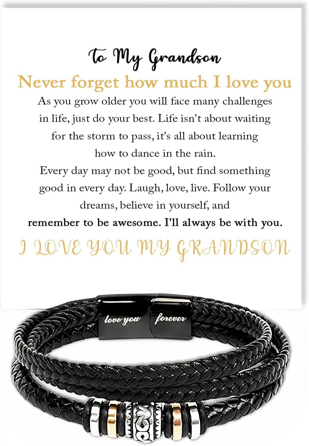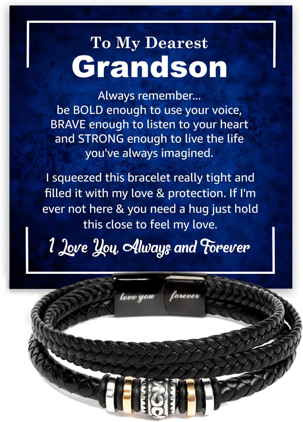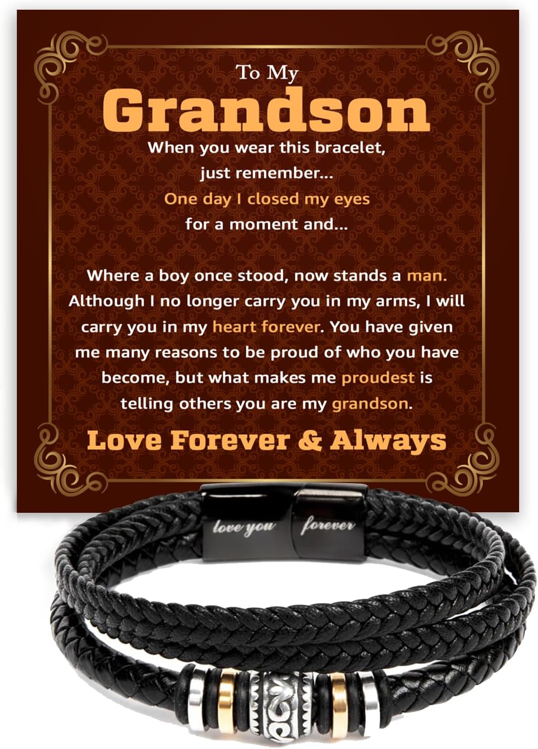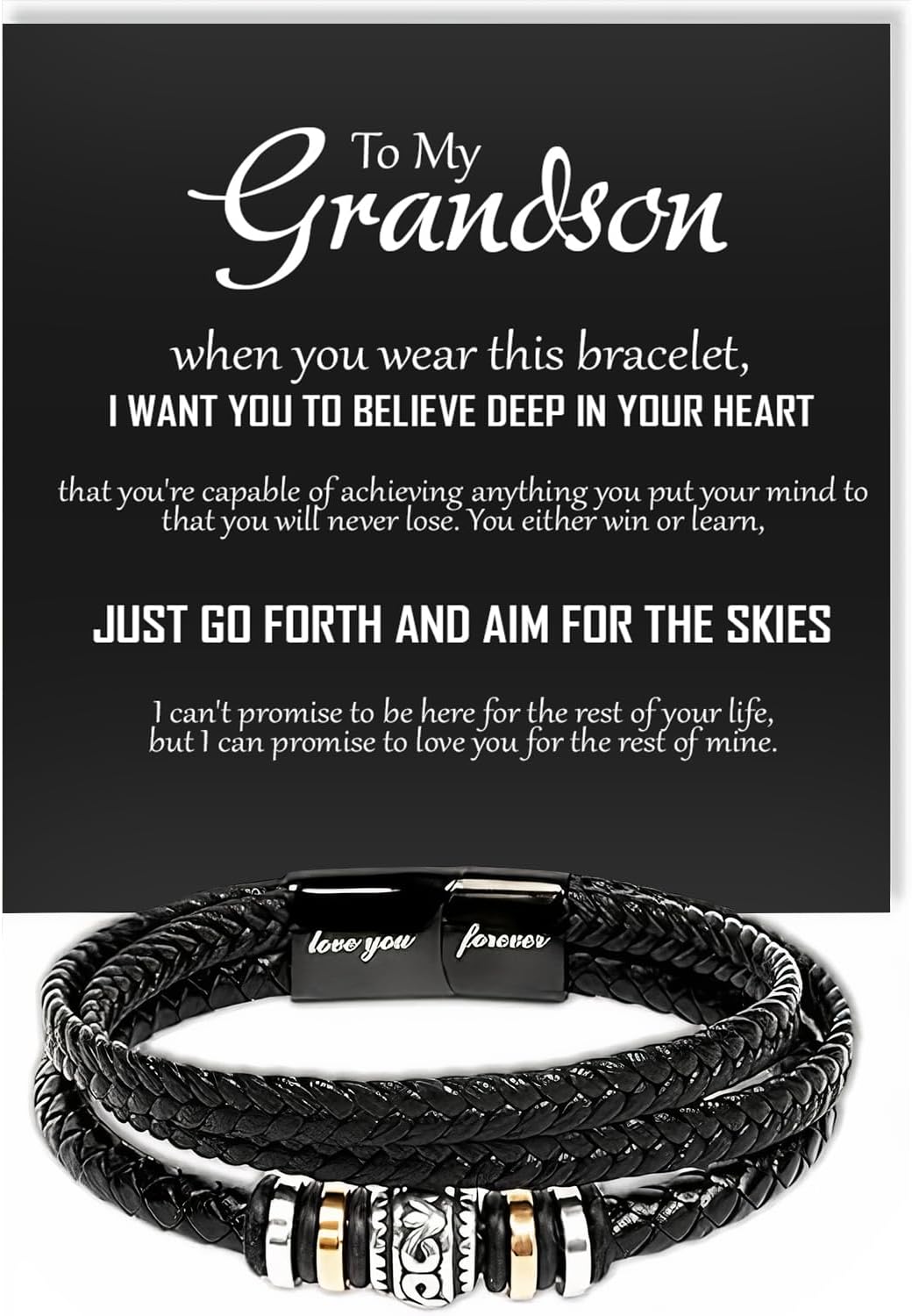 To My Grandson Bracelet From Mom Grandma, Handmade Braided Rope Bracelet Gift for Grandson From Grandparents, Valentines Birthday Graduation Day Christmas Gifts for Teenage