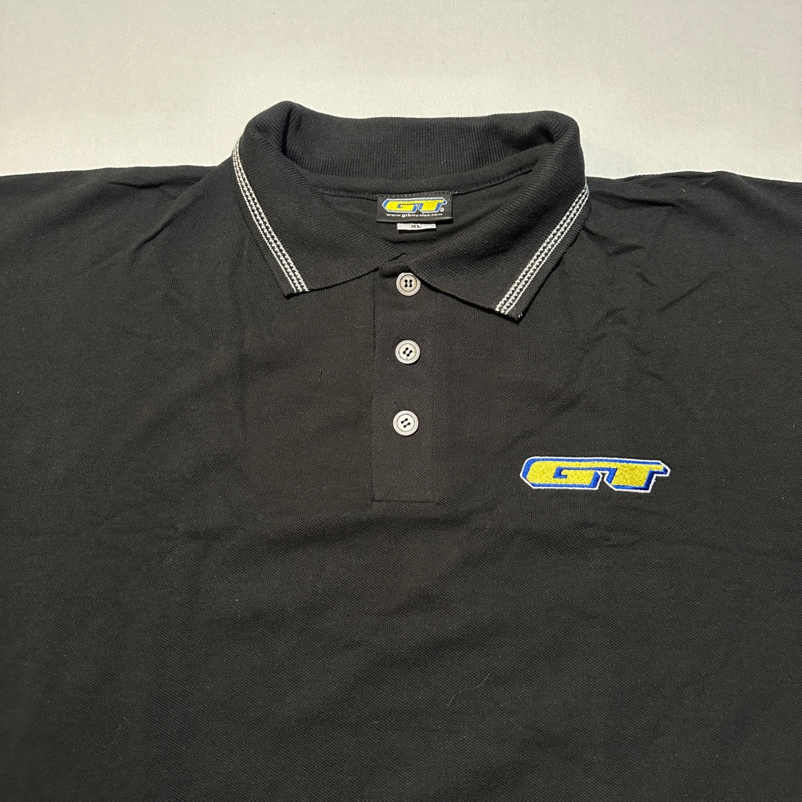 A vintage GT Bicycles polo shirt, capturing the essence of 90s BMX and MTB culture. This black polo features an embroidered GT logo, adding a touch of sporty flair. The shirt also includes cuffed sleeves with white accents, giving it a polished look. Crafted with meticulous attention to detail, this polo is likely a limited-edition team or dealer shirt, making it a rare find for collectors and enthusiasts. Ideal for casual outings, vintage-themed events, or adding a retro touch to your everyday wardrobe.